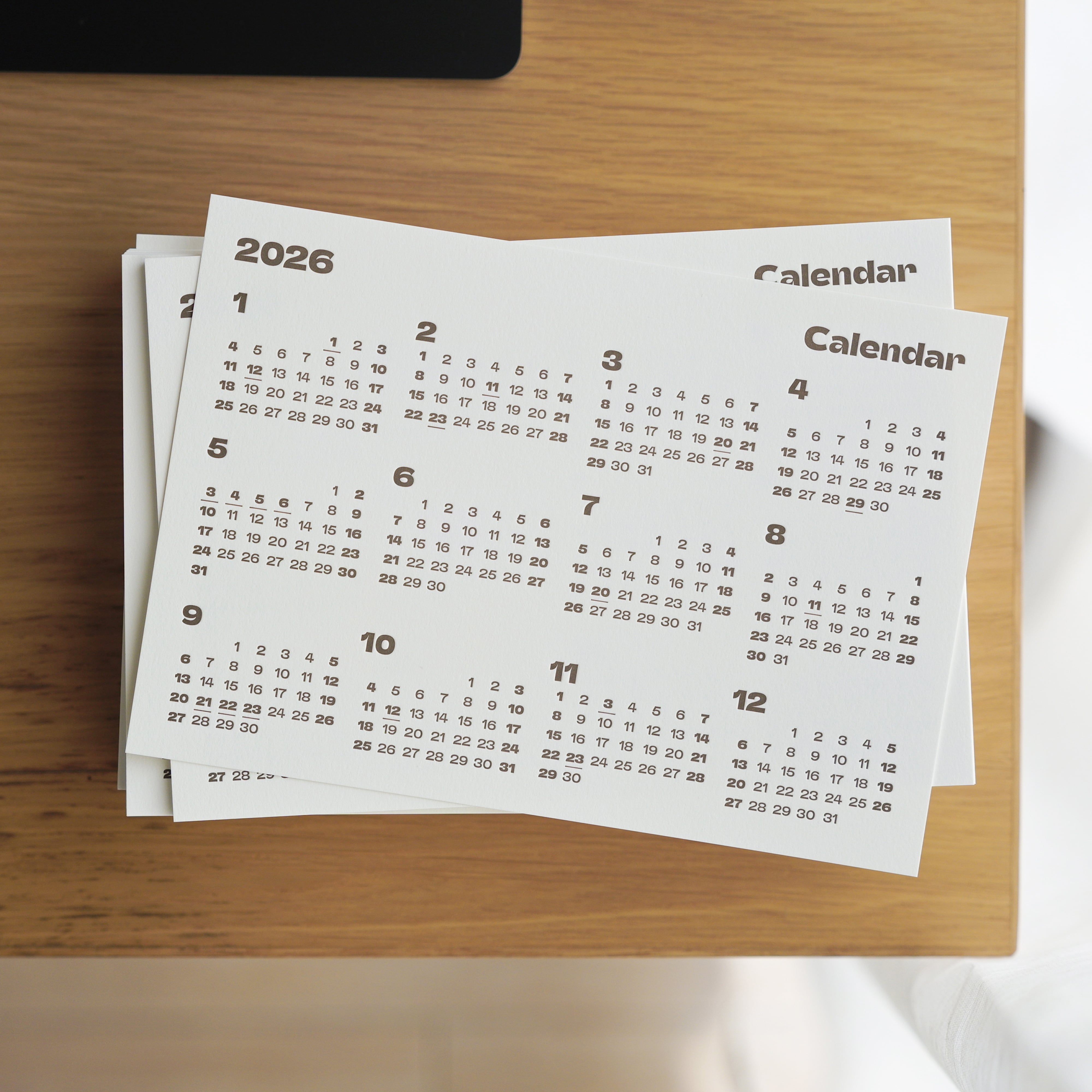 今回のカレンダーには活版印刷を採用。